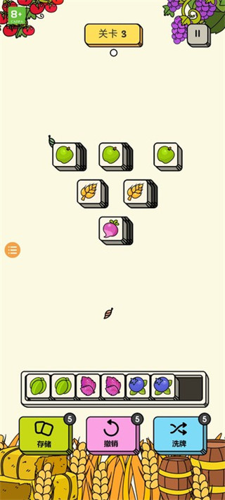 3、玩家们需要在屏幕中找出相同的三个图案,让后放在下方的格子中,玩到后面会越来越难,需要玩家们慢慢的思考,想出对策。