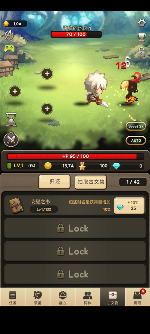 如果古文物tap攻击力升满则在完成以上任务时候不要使用自动攻击,因为手点的攻击力加成是600%儿自动攻击只有500%。