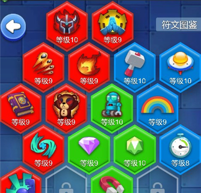 1、红色符文攻击间隔满级16级,暴击率70,其他目前无上限。绿色符文满级30,其中钻石等级18后,在y5以下的俸禄减时间消耗持平,v5以上双倍俸禄钻石8级就消耗持平。蓝色符文飞碟30满级,6分钟一次。