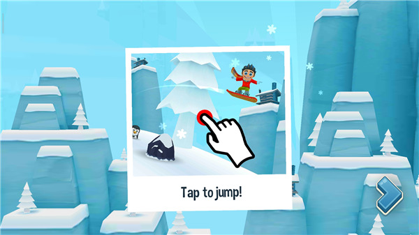 点击屏幕,就可进行跳跃动作。根据滑雪板和坐骑的不同,跳跃的高度和距离也会有所差异