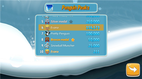 5、接着进入游戏便可开始,需要在雪崩来临之前快速前进,屏幕左侧上方的雪崩警示牌会在雪堆即将接近时不断地闪烁以示警告,即时你已经在视野中能够看到背后奔腾而来的大雪,如果此时爬起继续滑行,那么甩掉这近在咫尺的雪堆也并非不可能;