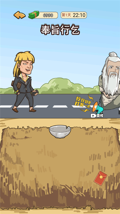 9、扮演乞丐后行人会自定打赏物件,它会自动转换成钞票;