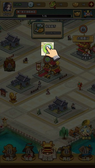 2、通过短暂的新手教程,你会陆续占领各种建筑,这些建筑会源源不断的为你提供资金来源,具体操作,点击建筑上方的图标即可,如图: