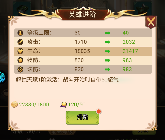 7、进阶魔核可以用来英雄进阶或者英雄升星。