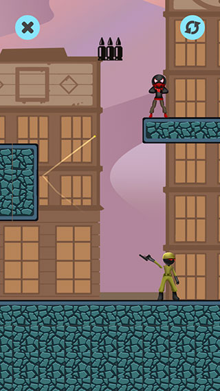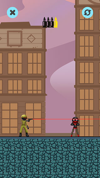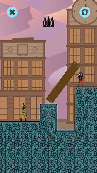 5、还有的关卡需要利用子弹命中墙壁反弹的机制消灭敌人。
