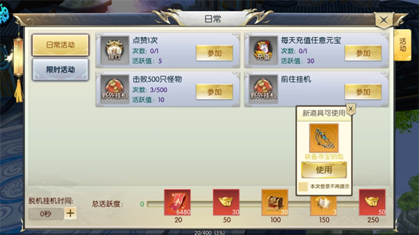 5、超多的挑战副本,包括守卫仙域、龙争虎斗、异兽入侵、巅峰道尊、神魔对决等。