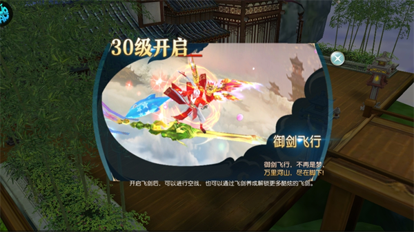 5、玩家达到指定等级后就会开启一些活动,比如30级可以开启飞剑后,可以进行空战,也可以通过飞剑养成解锁更多酷炫的飞剑。除此之外,还拥有好玩的答题活动供玩家参与。