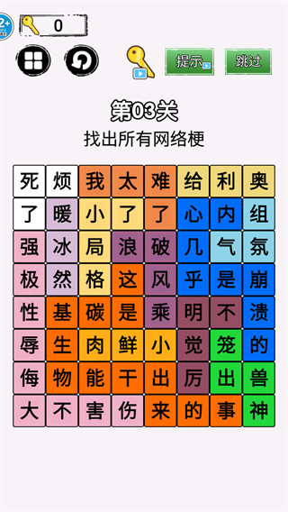 1、玩起来很好玩,每天都可以在不同的关卡里开心的找梗,知道网络术语。
