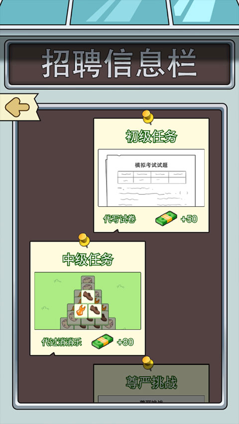 同时,在玩法上以挑战15块钱生活一个星期为主线,将冒险与模拟融为一体,在这里,玩家将化身意外欠下巨额债务的主角,为了能够获得上千万的奖金而参加这个挑战,并开始了为期一周打工生活!你可以在人才市场寻找合适的工作挣取外快,也可以在公园里买小吃、进行鉴宝、尝试投资,还可以在娱乐会所按摩,买彩票,调节自己的心情和状态…玩下来非常有意思!