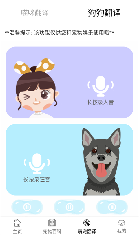 猫语狗语翻译器交流器通过音频分析,复述出猫和狗的叫声。
