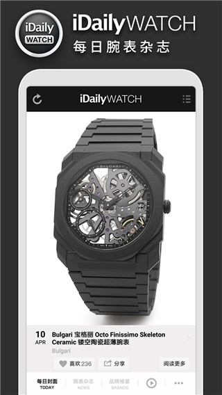 每日腕表杂志app是专为腕表设计而打造的一款杂志阅读软件。在这里软件每天都会向用户们推荐一款大师级腕表供你欣赏,3000px 高清细节+专业评鉴让从多方面更加了解腕表的各种美感,同时让用户们更佳清楚的了解到每一款腕表各自的细节美,还提供了精致全方位动态深入腕表细节视频做解说。