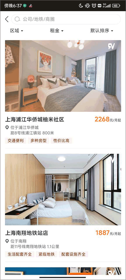2、你可以查询到附近的房源,并且可以选择区域和租金价格。选择好你需要一个你需要的房子并点击进去。