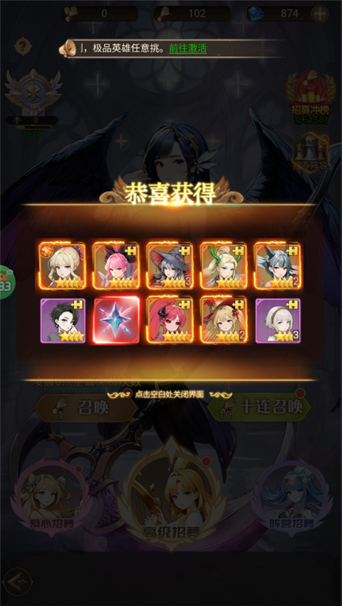 2、通过升级领取大量抽奖卷进行招募角色