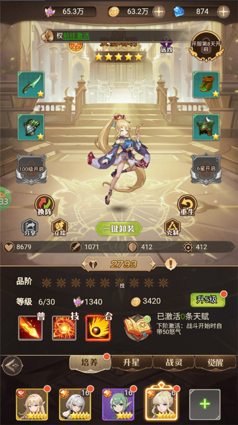 1、玩家达到一定等级可解锁全部人物卡槽