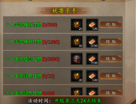 4、在开服前三天内完成任务规定的击杀任务可以获得丰厚的奖励。