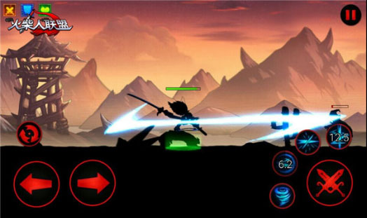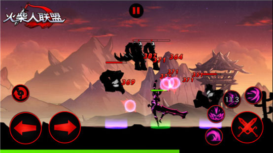 《火柴人联盟1》的格斗采用了类似于街机格斗游戏的操作方式。玩家可利用左侧虚拟方向键,控制英雄前进后退,并配合右侧攻击组合按钮,完成普通攻击和4种技能地释放。值得一提的是《火柴人联盟1》支持双英雄同时战斗。战斗中,玩家可随意切换操控二者相互配合,体验不同于以往的格斗游戏新体验。
