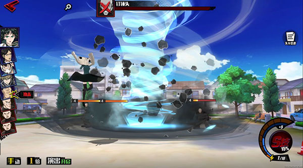 重击冲撞(绝技):撞击敌人造成多段伤害,并有一定几率将敌人击飞,行动条中每存在有一个bonus,提高一定击飞概率。