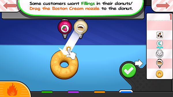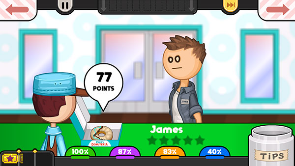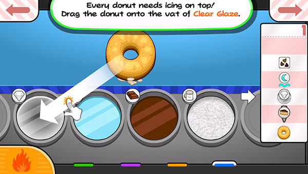 爸爸的甜甜圈店(Papas Donuteria To Go)是一款店铺经营模拟游戏,画风精美。我们在游戏中要按照顾客的需求制作各种各样的甜甜圈,主要是把甜甜圈扔到油炸锅里,两边都煮到刚好合适为止。然后给美味的甜甜圈用美味的馅料、糖衣和配料涂上,然后端给顾客,就可以赚钱。