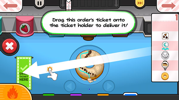 6、完成甜甜圈的制作后,将【订单】拖动至左侧,即可交付给顾客。