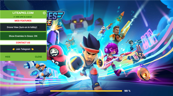 英雄来袭内置MOD菜单版是一款3D动画射击类手机游戏,该版本提供显示草丛中的敌人、无人机视图功能,帮助玩家更好的体验!