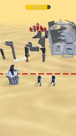 游戏中玩家将以第一人称视觉进行游戏,在这个过程当中我们需要抵挡敌人的进攻,操作非常的简单,只需要赚取金币来购买更多的士兵,从而来进行合成,合成的等级越高士兵的伤害也就越高了。随着游戏的发展,也就意味着越到后面越难,玩家后期还会遇到更多的敌人,比如:BOSS、快速移动的敌人等等,让你玩久了也不会感到无聊。