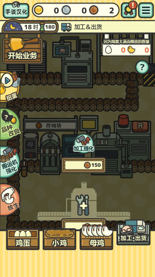 5、解放培养箱和加工装置,增加培养箱可以培育更多小鸡,增加新的加工装置可以让报酬得到提升;