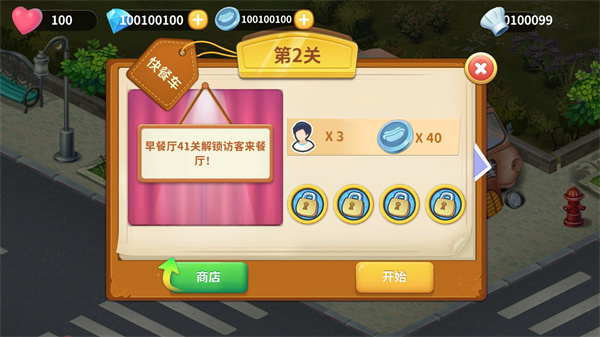 4、获取大量的金币,就能够给自己的餐厅进行星级上的提升;