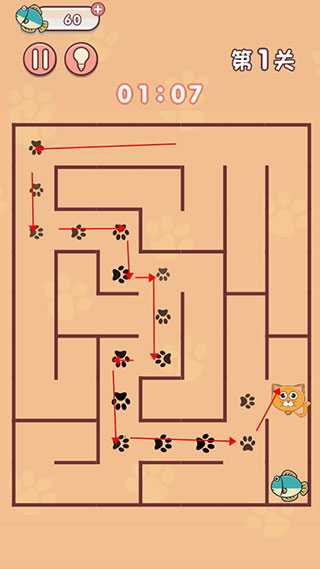 3、欢乐迷宫猫,手动走迷宫,还能和朋友比赛谁更快走出哦!