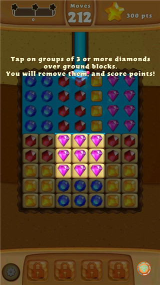 2、如下图所示:当相连的同种钻石有3个或3个以上,点击钻石即可将相连的同种钻石消除。