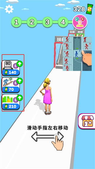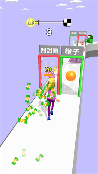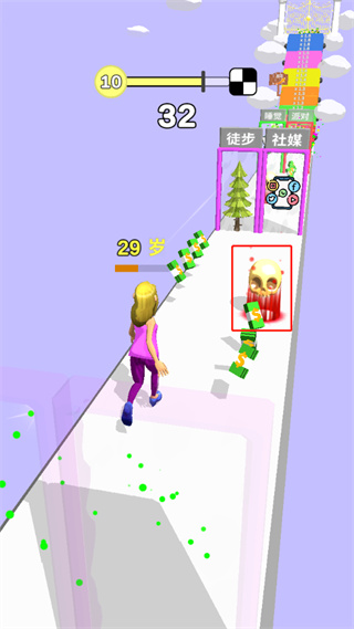 4、玩家需要选择遇到的障碍物,在赛道上收集大量物品,让自己更年轻。