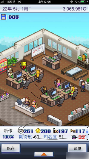 第一步:先准备好最强力的职员企划新的游戏,如果有一个趣味性、独创性、画面、音乐四个属性都很高并且得分超过32分的游戏更好,这样子我们可以制作续集,一般来说续集的开发都会比较顺利而且属性更高。