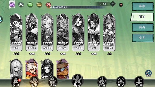 1、共5个阵营:妖族、人族、兽族、仙族、魔族。