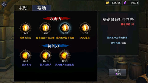 而被动方面也比较实际,攻速、移速、恢复能力等等,每个被动都有15个等级。