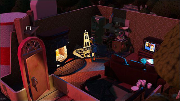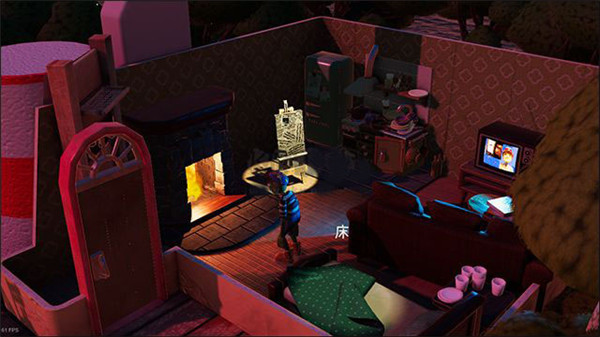 2、在这里玩家可以和房间内的物体互动,可以互动的有画架(进入主线)、床、电视等