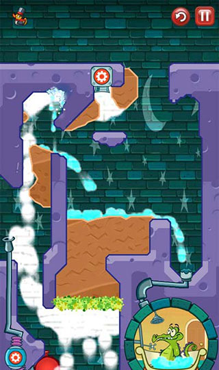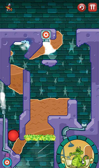 3、值得一提的是,游戏中还会出现一些绿色水草,水草遇到水就会猛长,最后堵塞导管,这时候就要毒水就可以派上用场了,可以用毒水破坏水草,再流入清水。游戏画面轻松可爱,关卡的设计也很丰富,极富挑战性,拥有视网膜显示图像,多点触控及出色的音质效果。