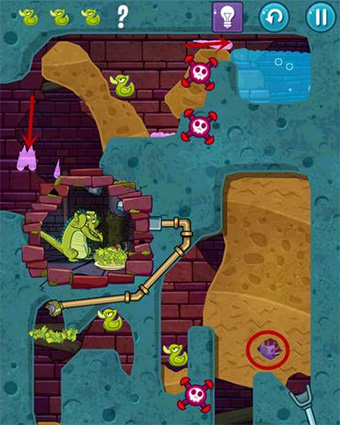 1、操作方式很简单,用“鳄鱼抓”对着一片棕色土地进行刨土,让水流流入小鳄鱼的洗澡水管里即可。在游戏过程中,玩家要保证清水顺利流进小鳄鱼的澡盆里,沿途还要尽量收集小鸭子,要尽可能多多收集,同时还要注意收集有些隐藏的道具。