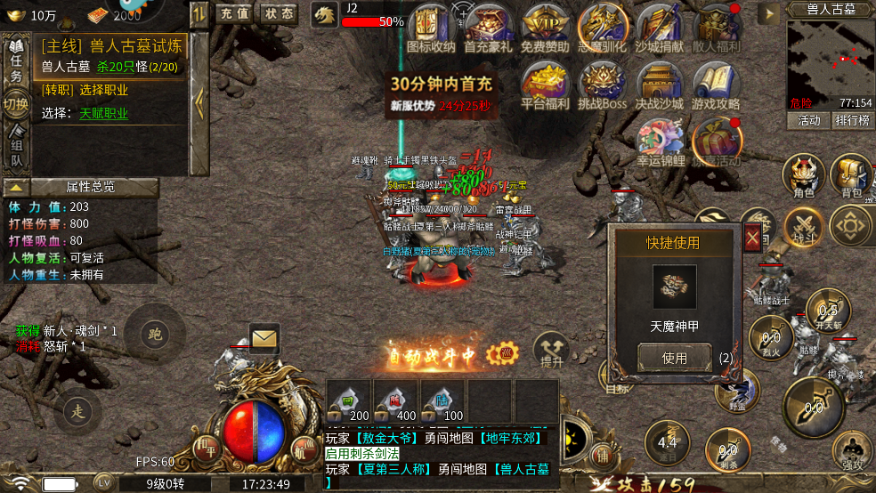 3、优先提升恶魔驯化,恶魔驯化礼包中赠送的道具可让你在BOSS中间横着走!