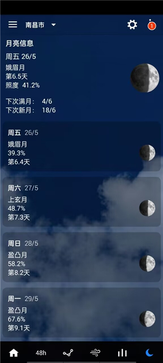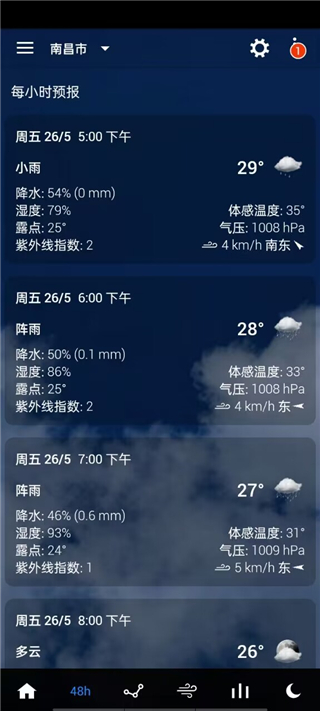 3、点击48h板块,我们查看当前城市的48小时中没小时天气