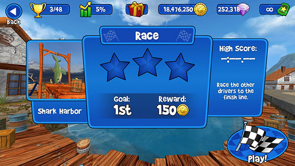 使用您的金币收集和一个车库充满了独特的汽车,从怪物卡车肌肉车升级到月球车!