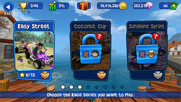 3、有简单模式,正常模式和冠军赛,新手先从”Easy Street“开始。