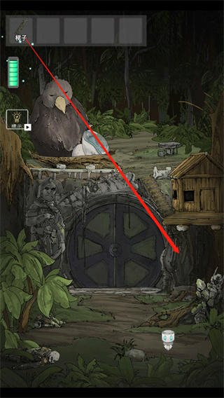 13、这时玩家会获得一个梯子,再将获得的梯子放到木屋的下面,爬上木屋;