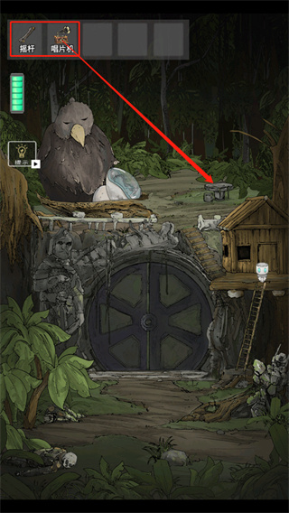 14、进入到木屋,拿到唱片机和摇杆;