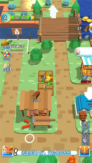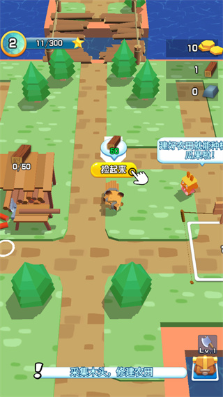 8、玩家每砍一颗树和挖一个矿都会获得小星星,到达一定的小星星即可升级,升级后会解锁更多的地域;