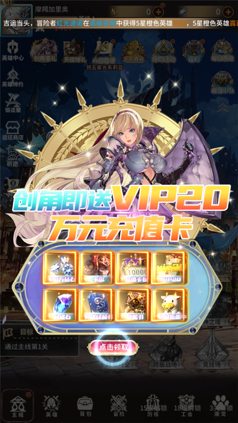 2、登录即送超稀有UR光暗英雄、送月卡、至尊月卡