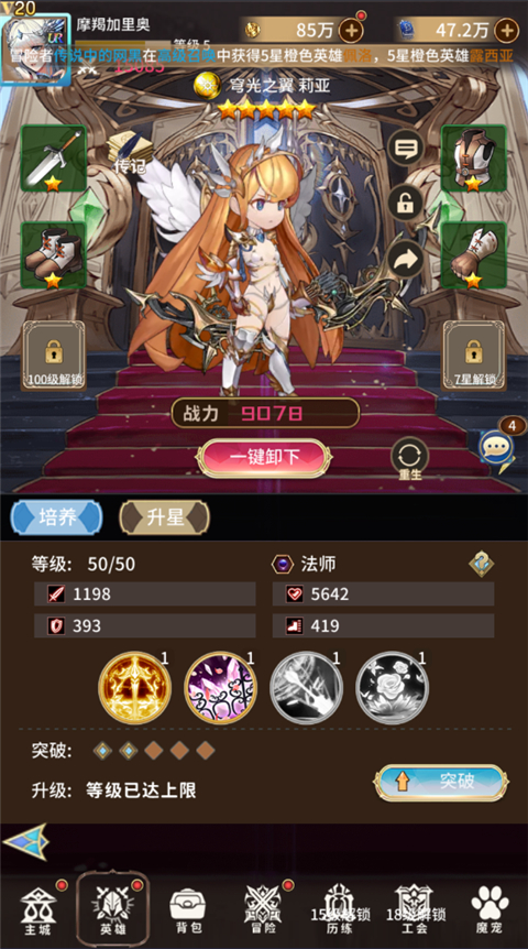 2、有了更多角色后,即可点击英雄进行搭配上阵英雄