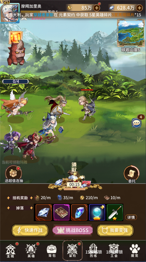 4、送超值连抽:主线闯关对应关卡即可领超值连抽;