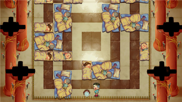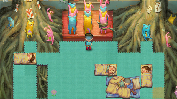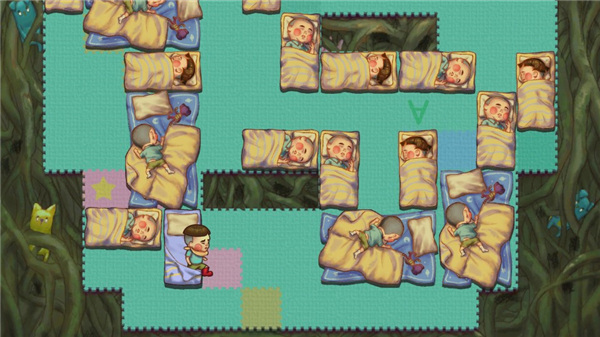 第一章,《静悄悄》,从一个固定位置的男老师上方的玩偶往右走,进入隐藏空间调查墨镜;