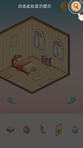 1、该游戏的主要玩法就是将家具移动到正确的位置,以装扮出漂亮的房间。