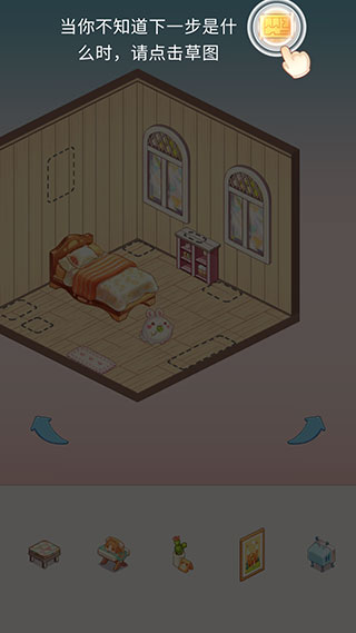 2、点击两侧的箭头可以旋转房间视角,方便玩家移动家具。