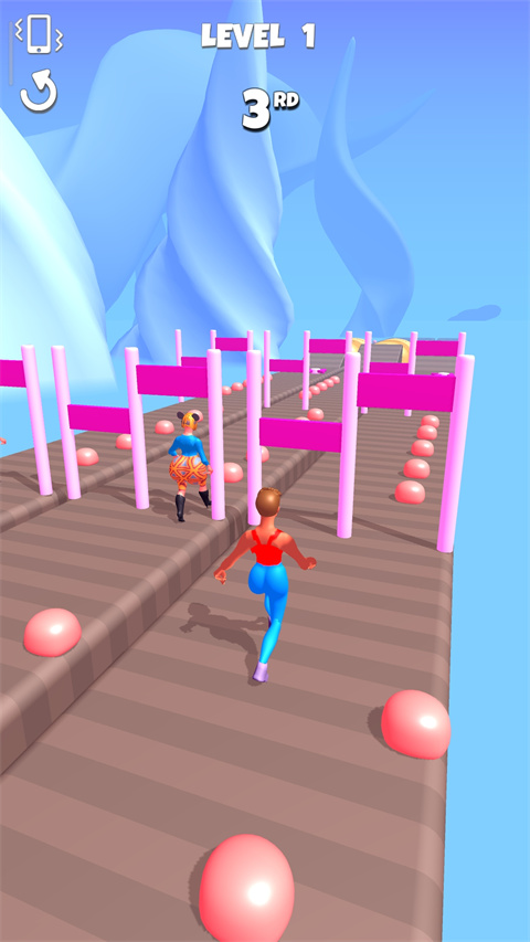 2、这里需要收集路上的粉色球球,同时还需要躲避障碍物;